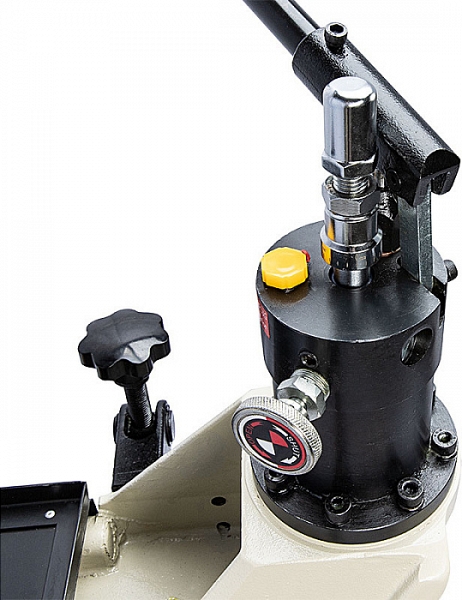 Электрический гидравлический желобонакатчик Rotorica RG-1S (Роторика РГ-1С) – с модернизированным ручным гидравлическим насосом – грувлочный желобонакаточный станок с модернизированной ручной гидравлической подачей накатывающего ролика для накатки канавок (желобков) на углеродистых стальных трубах из углеродистой стали Ø 1" – 8" (25 – 200 мм) sch. 7/10/20/40 и нержавеющих стальных трубах из нержавеющей стали Ø 1" – 8" (25 – 200 мм) sch. 40, толщиной стенки до 8 мм при монтаже водопроводных, отопительных, пожарных и промышленных трубопроводов без применения сварки. Отличное решение для выполнения больших объемов работ на стройплощадке или в цехе производства.