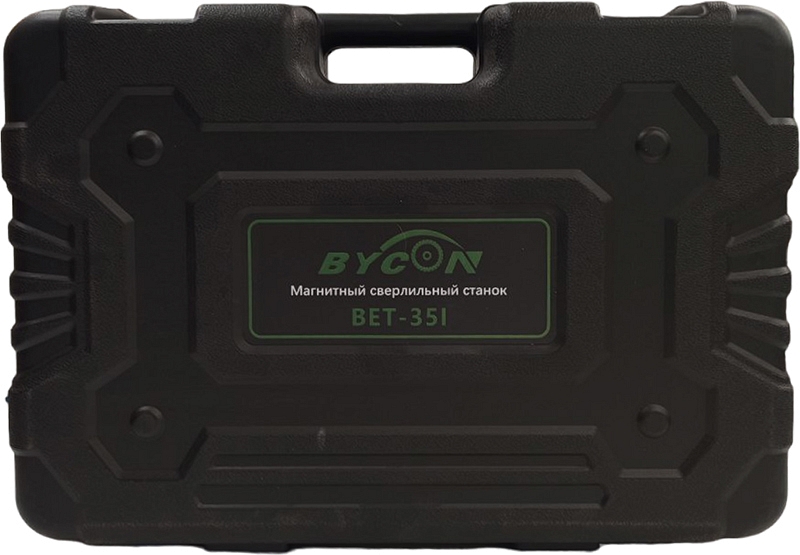 Магнитный сверлильный станок Bycon Bet-35I (Байкон Бет-35И) – переносной сверлильный станок на магнитном основании является оптимальным решением для сверления отверстий Ø 12 – 35 мм в металле корончатыми сверлами (кольцевыми фрезами) и Ø 6 – 16 мм в металле спиральными сверлами с к/х.